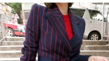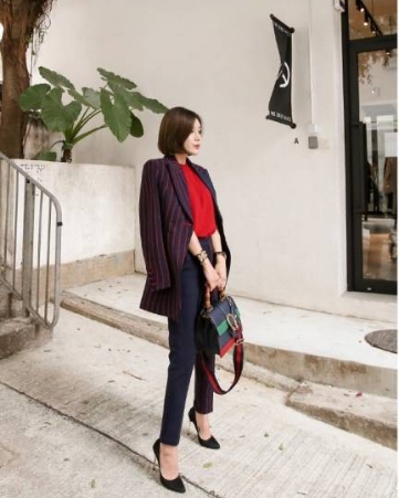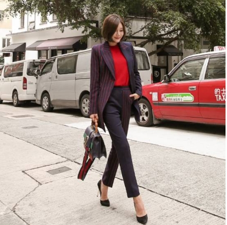 スーツに入ったレッドを差し色にすると、上品にまとまります♪
