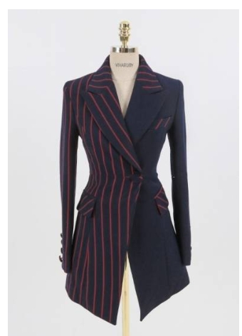 半身はストライプ、半身は無地と、個性的なデザインが特徴で、