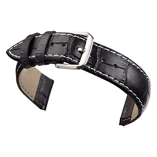 -. Title : 16mm Women's Black Leather Watch Band Straps Replacement Genuine Calfskin Crocodile Embossed with Contrast White Stitching