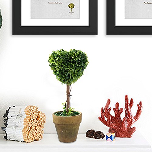 Nattol Mini Heart Shape Artificial Topiary with Paper Pulp Pot for Home Decor (Green)