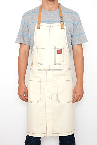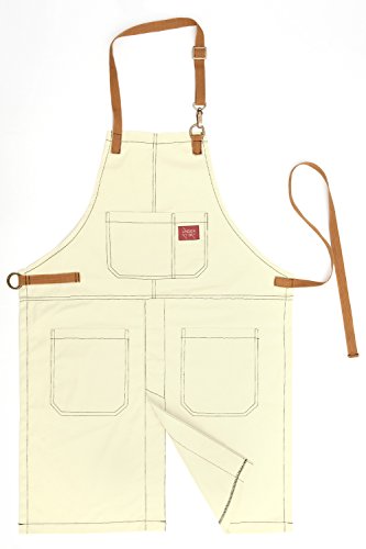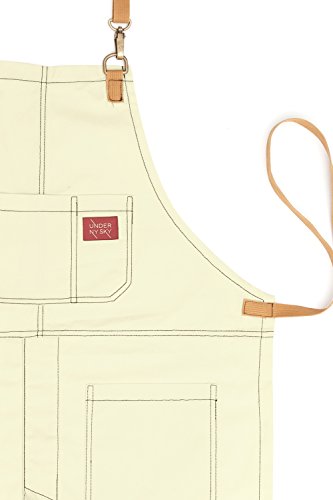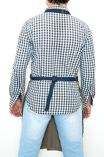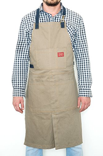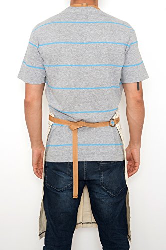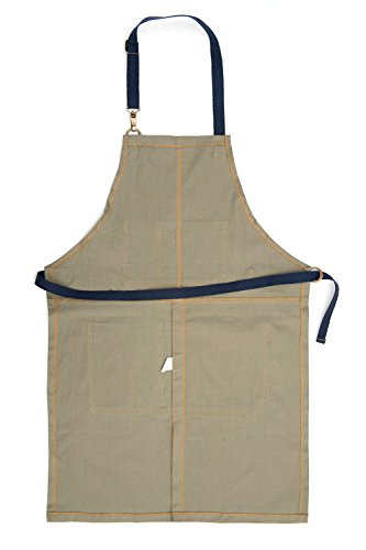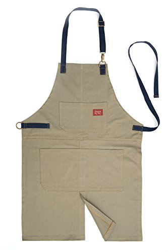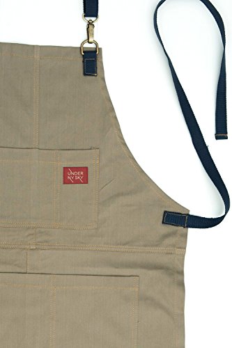Under NY Sky Split-Leg Apron - Khaki Beige Denim - Easy fastening & Cloth holder
