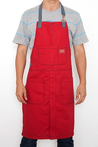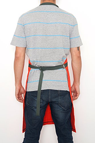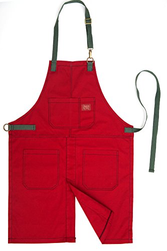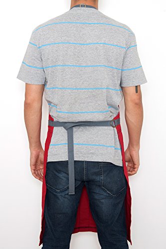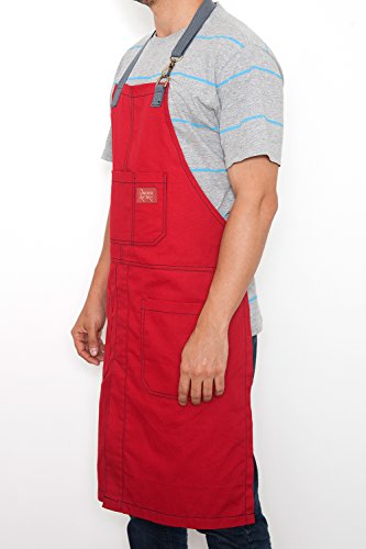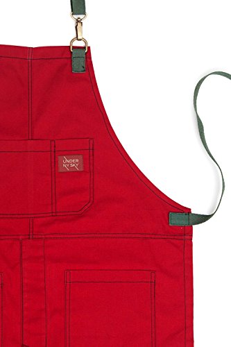 Under NY Sky Split-Leg Apron - Flame Red Canvas - Easy fastening & Cloth holder