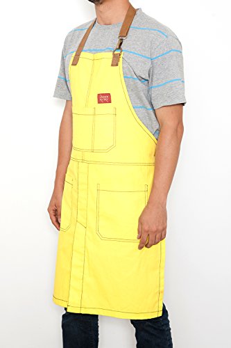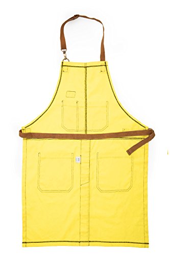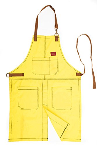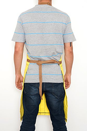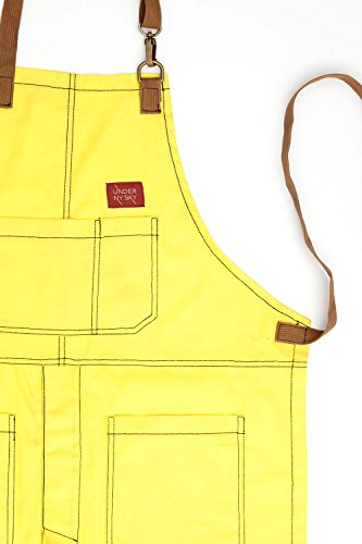 Under NY Sky Split-Leg Apron - Vanilla Yellow Denim - Easy fastening & Cloth holder