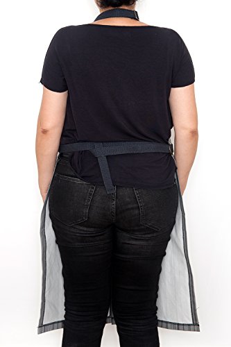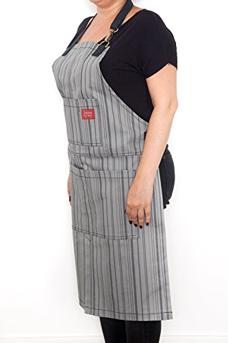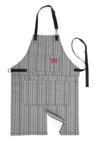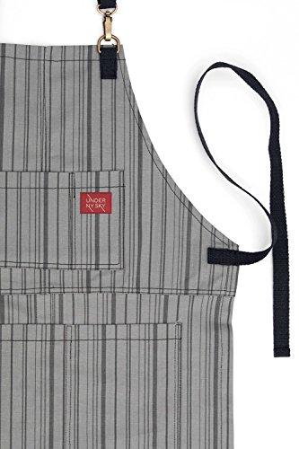 Under NY Sky Split-Leg Apron - Striped Gray Denim - Easy fastening & Cloth holder