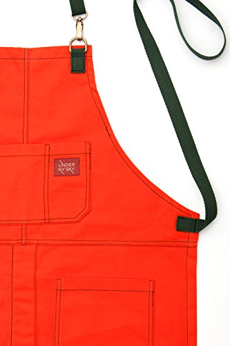 Under NY Sky Split-Leg Apron - Neon Orange Canvas - Easy fastening & Cloth holder