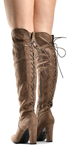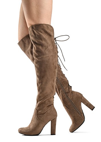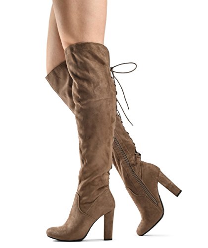 LUSTHAVE Zoe Stretch Thigh High Boots - Trendy Comfortable Block Heel - Over The Knee Pullon Se...