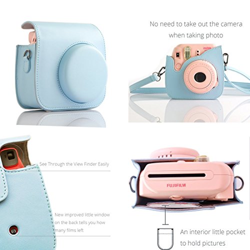 FUJIFILM INSTAX MINI 8 INSTANT CAMERA ACCESSORY BUNDLES SET (included: BLUE mini 8 vintage case bag/ instax mini book album/ mini 8 self-portrait mirror/ colorful close-up lens(filter) / colorful photo frame/ colorful decor sticker borders/ wall decor hanging frame)