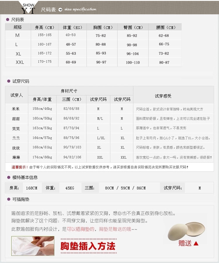 Model size:Height=168cm, weight=45KG,Bust=80cm,Waist=59cm,Hips=86cm
