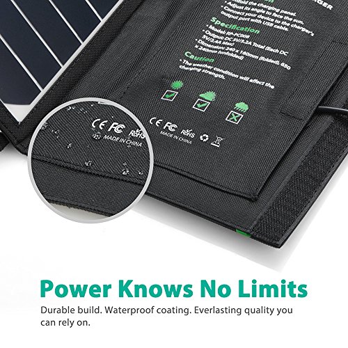 Solar Charger RAVPower 16W Solar Panel with Dual USB Port Waterproof Foldable for Smartphones Tablets and Camping Travel