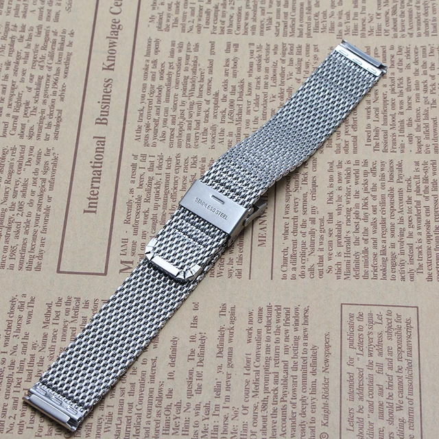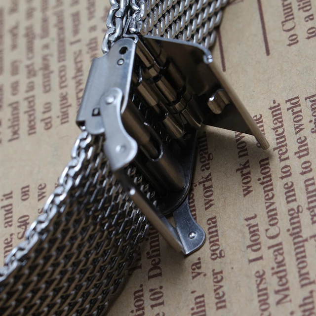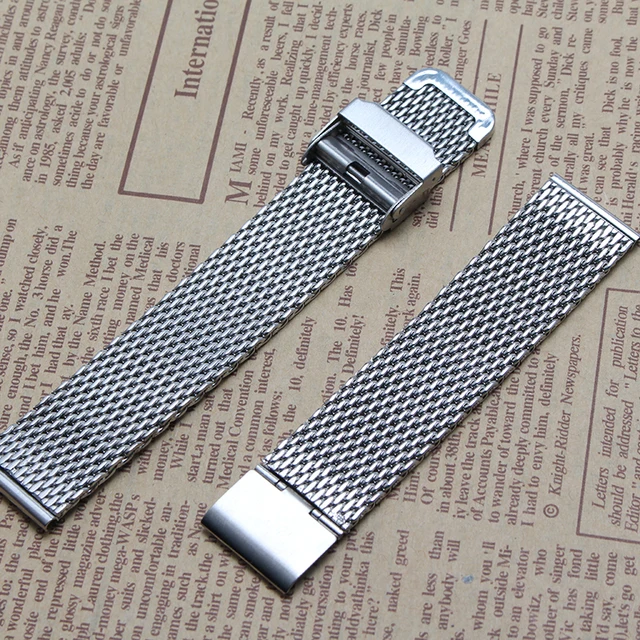 | [해외] 높은 품질 내구성 조정 금속 메쉬 손목 솔리드 링크 버클 시계 밴드 실버 18 미리메터 20 미리메터 22 미리메터 thiner 팔찌 |
