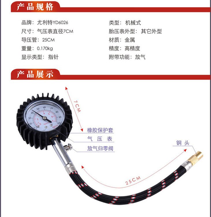尤利特精密式轮胎YD6026气压胎压表(黑色)