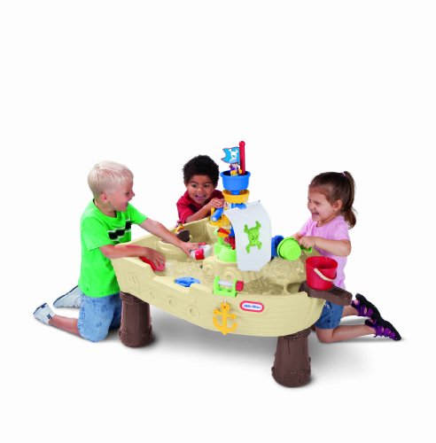 - Feature : Fun pirate ship themed outdoor, water play table loaded with spinning features / Water moves with pump or by pouring water into the crows nest / Aim and squirt water from the water cannon / Anchor raises and lowers by cranking the handle / Made in USA