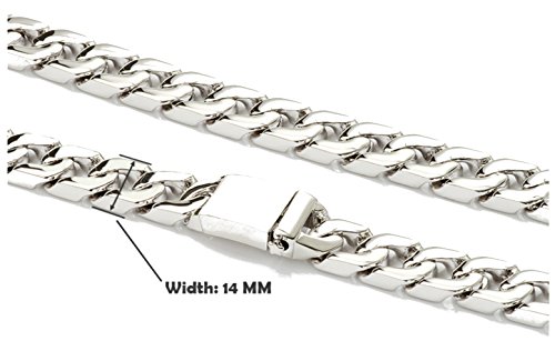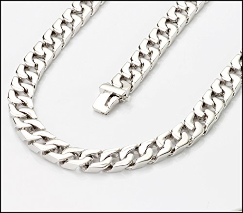 -. Feature : ►►BEWARE OF CHEAP IMITATIONS OF MTG PRODUCTS! Real 18 Karat White gold Plated MIAMI CUBAN LINK NECKLACE, laid over a heart of semi-precious Marerials. 14MM Miami Cuban Curb chain, We use over 20mls of real 14 karat gold per chain - 10 times more gold than in the cheaper electroplate that changes color quickly / ►►OUR TRADE SECRET IS SEMI-PRECIOUS ALLOY OF THE BEST BONDING METALS ENSURES THE LOOK OF SOLID GOLD and LONG LIFE of the item. Email us for more sizes and options, check out our matching BRACELETS! / ►►100% UNCONDITIONAL FREE REPLACEMENT GUARANTEED ON ALL MTG JEWELRY! ►Due to the fact that each piece is hand made, sizes may vary slightly / ►►WE ONLY USE THE PUREST FORM OF 18k WHITE GOLD No cheap metals like steel, copper (turns green) or nickel (toxic) as a usual fashion jewelry base, We guarantee that you wont get any itching or skin problems with our jewelry. / ►►CRAZY LOW AMAZON INTRODUCTORY PRICES FOR A LIMITED TIME ONLY! Ideal for men, women, teens. Makes a great GIFT (comes in a small cotton filled MTG gift box)