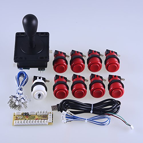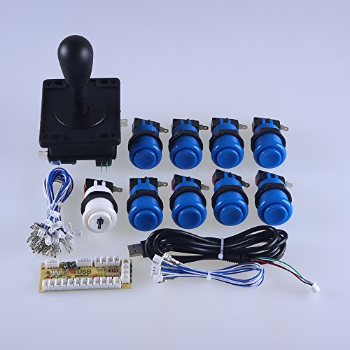 Easyget Classic Arcade Game DIY Parts for Mame USB Cabinet 2x Zero Delay USB Encoder + 2x 8 Way Classic Arcade Joystick + 18x Classic Arcade Push Button (Including 1p / 2p Start Push Button) Blue + Red Color Kits