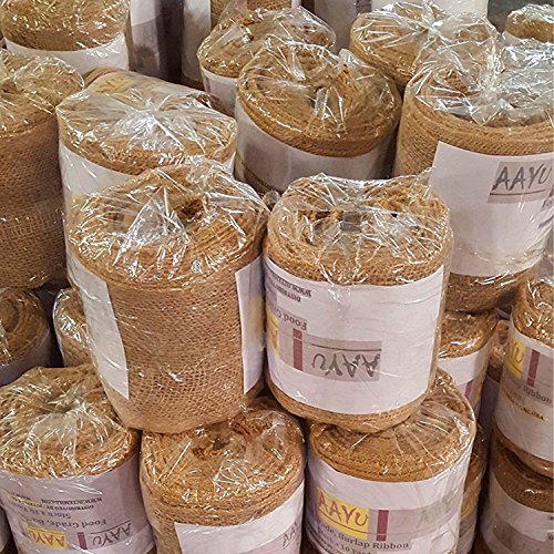 - Size about 2.5 inch x 10 yards burlap ribbon, 7oz fabric per square yards.