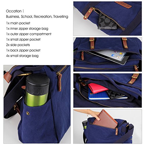 -. Feature : Eco-friendly material : Made of high-grade eco-friendly canvas and leather accessories . / High-quality hardware: Retro color hardware accessories ,not easy to fade , very durable . / Large capacity: Size: Length 42cm x width 18cm x height 52cm.has special compartment for laptop. It can easily hold your 14" Laptop, IPAD and magazine size files etc. / Retro Design: stylish retro canvas design, Unisex, for learning, leisure, outdoor sports, travel and other scenes . / Warranty: We promise free replacement if there is quality problem, please rest assured to buy.