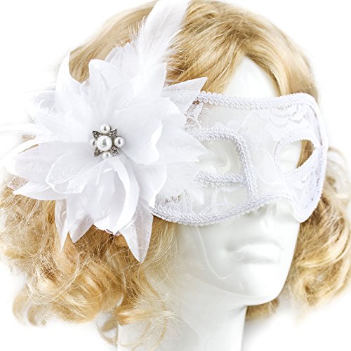 -. Feature : Lace fabric with decorative trimming around the edges, real ostrich feather / Glitter trim Silk flower with a 0.75 in (2 cm) sparkly Glass Crystal accent center (stands out from other masquerade masks!) / Size: One size fits all, Includes adjustable 5/8 inch (1.6 cm) Organza ribbon straps for an all-day comfortable fit,Suitable for any adult / Perfect for Halloween costume/Christmas, holiday, formal, New Years Eve masquerade, gala, mardi gras, party ball PROM, costume for cosplay party / Proudly made in USA