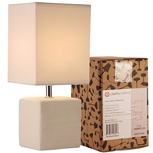 TABLE LAMPS FOR BEDROOM - Off White Fabric Square Shade to add a neutral color to your bedroom, living room, office, dorm room, or work space. Makes the perfect Lamp for Bedroom, nightstand lamp, bedside lamp, Side Table Lamp.