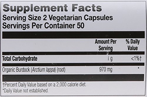 -. Title : Solaray Organic Burdock Root Supplement, 485 mg, 100 Count