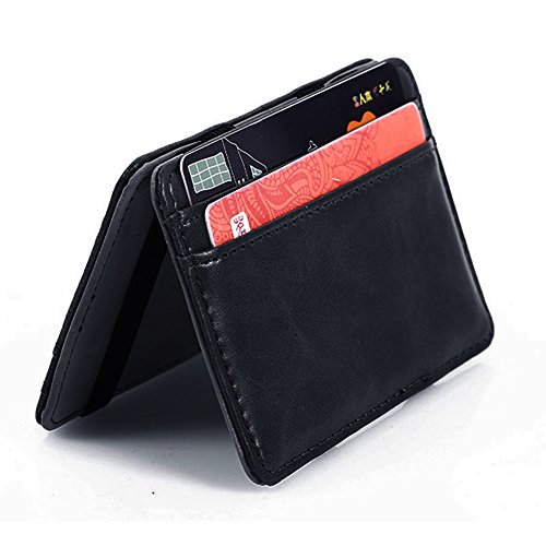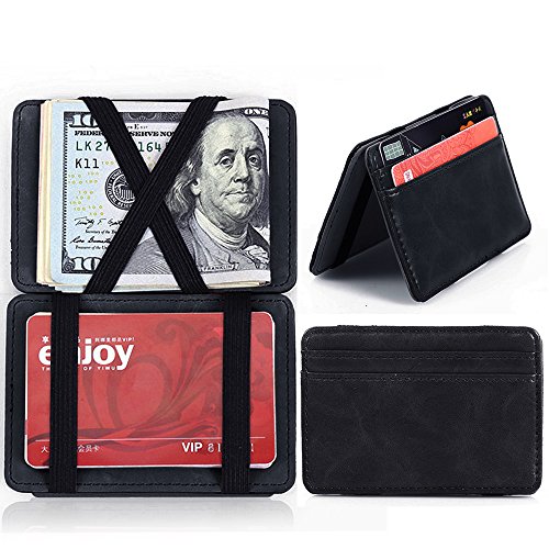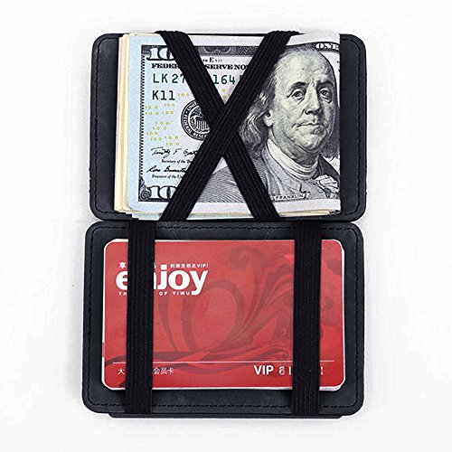 -. Feature : PU Leather --- Made of High Quality PU Leather, Durable, Wear-resisting, Smooth, Ultra Slim and Lightweight / Magic Wallet --- Equipped with the Innovative Magic-flip Feature: cash is held by elastic straps and when you close and reopen the wallet from the other side, the cash will magically move to the other side. / Multi Functions --- 4 x Card Holders and 4 x Elastic Straps (to "Magically" Keep your Currency and Cards Securely in Line); Cash Strap is the slimmest solution to secure cash on a money clip. / Unique Design --- Minimalist Clear Layout, Ultra Slim and Bifold Design, Easy Access to Cash and Credit Cards When Needed, Compact and Small Enough to Put into your Coat Pocket, Ideal Gift for Yourself, your Family and Friends / Package --- It contains a stylish wallet and a exquisite GIFT BAG, which is of good quality. Please kindly don't throw the bag away when receiving the package, since you can still use it to hold your jewelry or other important small things.