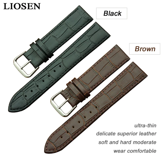 | [해외] Liosen 줄 초박형 정품 가죽 버클 스트랩 18 20 22 24 미리메터 남성과 여성 시계 밴드 블랙 브라운 |