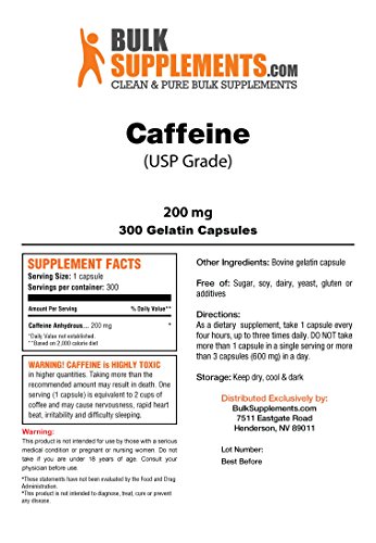 -. Title : Bulksupplements Pure Caffeine Capsules (200 mg)