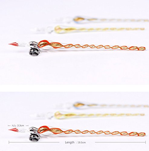 -. Feature : Material:Crystal glass.Handcrafted glass pen. / Size: approx 19.5cm(7.7 Inches); Nib: approx 3.3cm(1.26Inches). / Traditional writing light glass dip pen with vintage style.Reminiscent of the Quill pen. / This pen makes your ink sampling much more convenient and efficient. / It is lovely in the pen holder/inkwell. A very beautiful and cute decoration on your desk. A perfect gift.