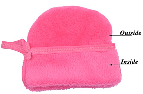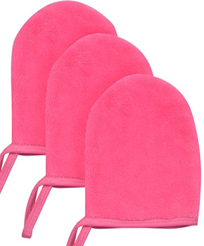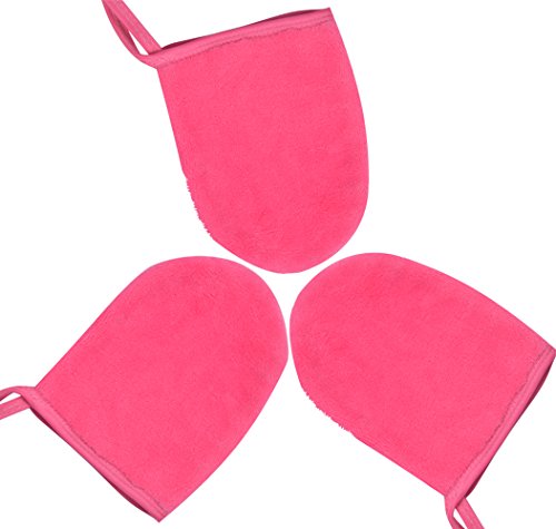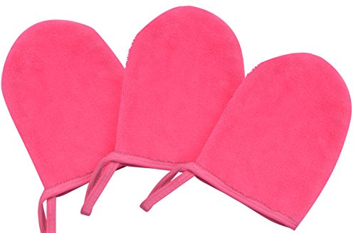 Sinland Microfiber Makeup Remover Gloves Face Cleansing Towel Cloth Spa Mitts Soft Washing Tool Pack of 3 Dark pink