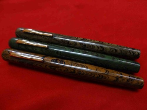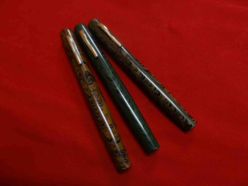 -. Feature : This Large pen is made up of Indian Ebonite and handmade.The ripple pattern is unique ,rare and beautiful.The Speciality of this pen is extraordinary craftmanship ,Quality of the Ebonite and the colour. / Ebonite is the material used to make initial age of pens and used in expensive pens now.It is highly durable,highly polished and it will live with your generations. / It is highly durable,highly polished and it will live with your generations. The Colur,Material and the size of the Pen possesses Vintage look. / The Clip is Gold Coloured steel clip. White clip is available on request. All your order pens will be packed in a Single box. / This Pen uses and Comes with German JOWO SCREW IN nib units and Schmidt K5 Converter. It also accepts international catridges. Jowo nibs are one of the finest nibs available in the world.The nib is of superior quality and genuine German made.The available nibs are Gold Coloured Medium Point and Gold Coloured Broad Point nibs,Two Tone Fine Point, Two Tone Medium Point, Two Tone Broad Point, White Polished Fine Point, White Polished Broad Point nibs.. Please check with us for the availability of the nibs. The pen can be used as Eyedropper also. The length of the pen when capped is app 6 inches. The diameter of cap is 16mm and barrel is 16mm.