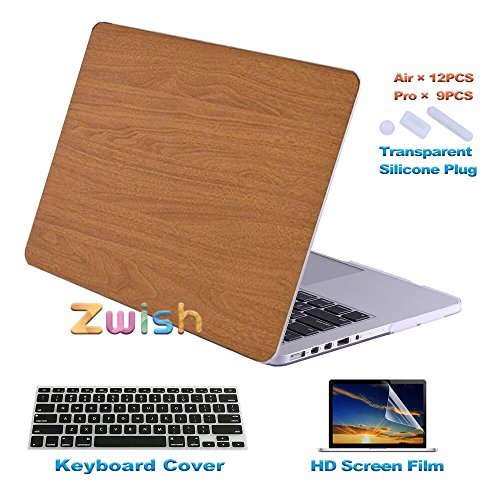 -. Title : Zwish 5-in-1 Anti-Slippery Wooden Pattern Hard Shell Clip Snap-on Case Protective Cover for Apple MacBook Air 13" Set w/ Upper&Bottom Case,Keyboard Protector,Screen Film,Dustproof Plug(Wooden03)