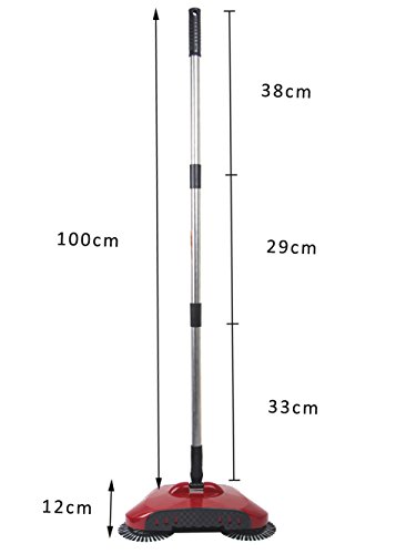 Brush Sweeping Machine Household Cleaner Automatic Push Sweeper Broom Without Electricity by Hierkryst(Red)