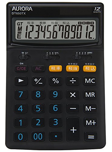 Aurora Japan calculator 12-digit tax rate switching DT650TX-B black with switch