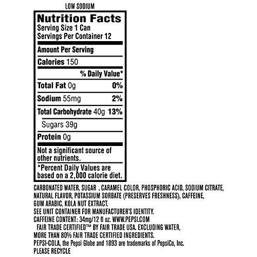 Pepsi Cola 1893, Original Cola, Certified Fair Trade Sugar, Real Kola Nut Extract 12 oz sleek cans (Pack of 12)