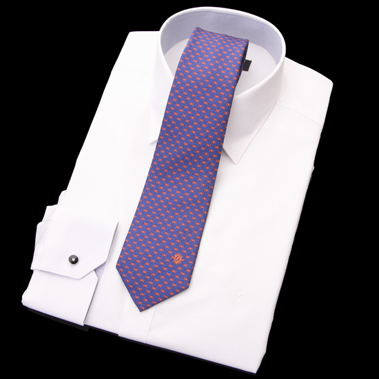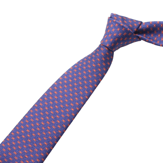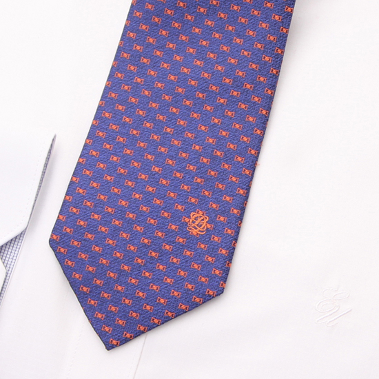 화사한 오렌지색상의 배색이 돋보이는 네이비 슬림 넥타이입니다.