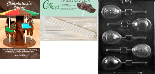Cybrtrayd 'Sports Themed Eggs Lolly' Easter Chocolate Candy Mold with 50 4.5-Inch Lollipop Sticks and Chocolatier's Guide