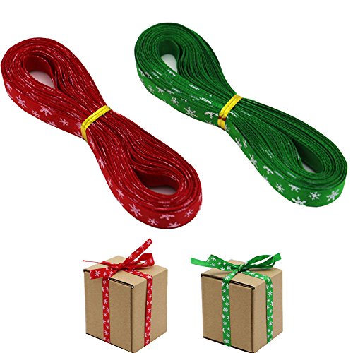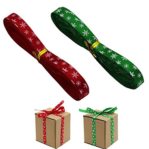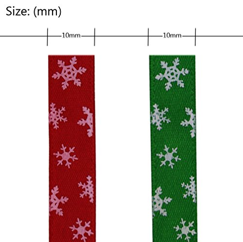22yards 3/8" 10mm Snowflake Grosgrain Ribbon for Christmas, Holiday, Winter, Hair Bows, Gift Wrapping, Green and Red