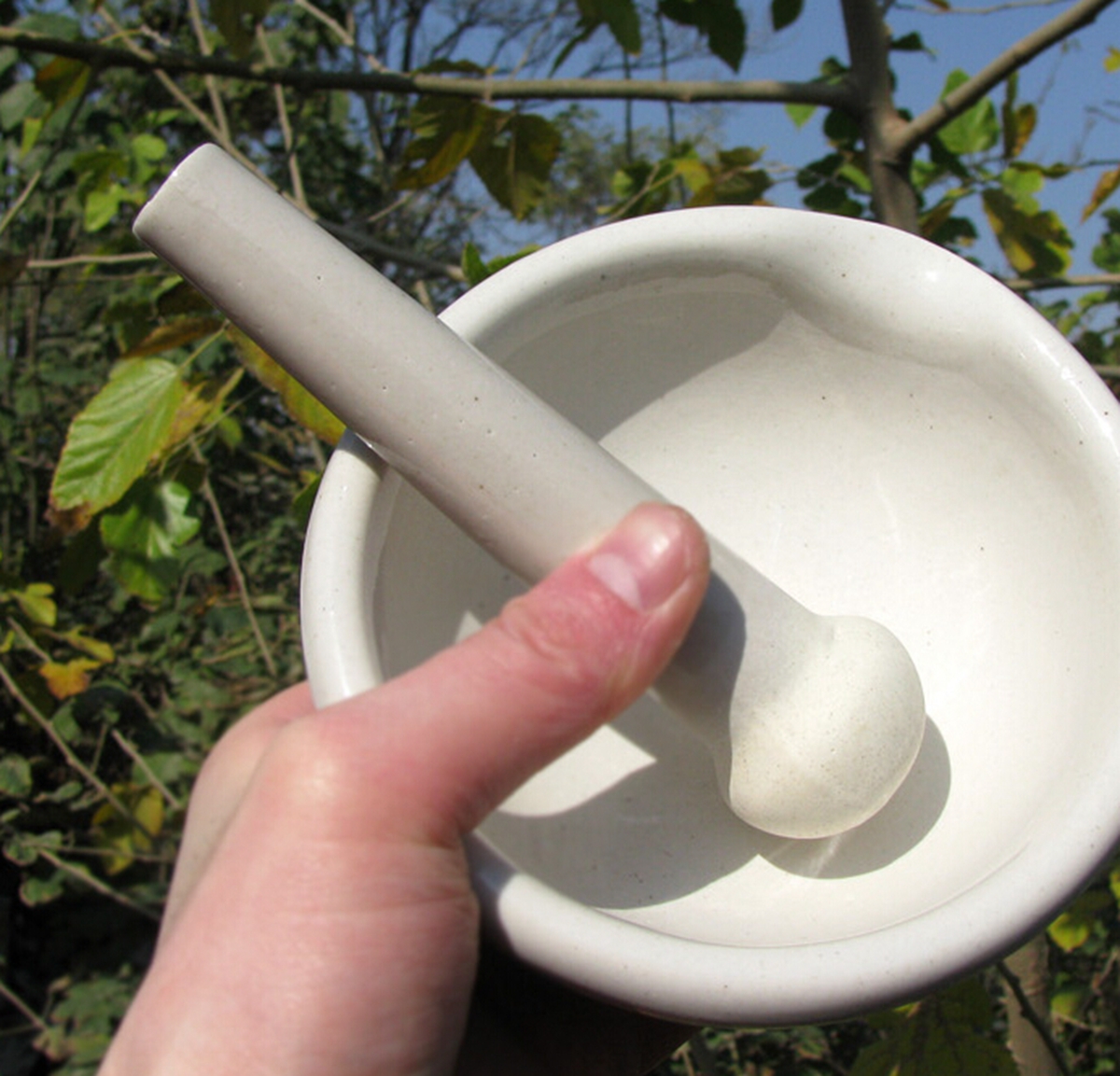 Porcelain mortar and pestle set provides a simple way to crush andgrind medicine,nuts and other substance that is softer thanporcelain.