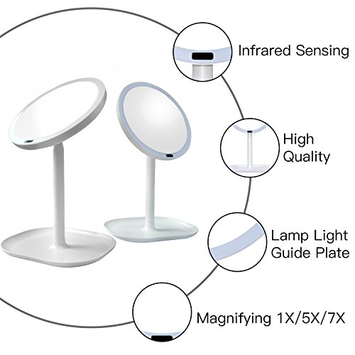 Meijing Motion Sensor Lighted Mirror Table Top Lamp Make up Mirror Rechargeable 360 Degree Rotation Infrared Induction 10X Magnifying Vanity Mirror
