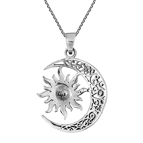 Take your style to new and symbolic frontiers with this necklace by silver artisan Khun O. The necklace features a crescent moon embracing the sun in a scintillating eclipse. Crafted in .925 sterling silver, the pendant hangs from an 18 inches chain that fastens with a spring ring clasp. PLEASE NOTE: The handcrafted nature of this product will produce minor differences in design, sizing and weight. Variations will occur from piece to piece, measurements may vary slightly.AERAVIDA works directly with gifted and talented Artisans from all over the world. At the core of our philosophy is fair trade and fostering a sustainable future for our Artisans.