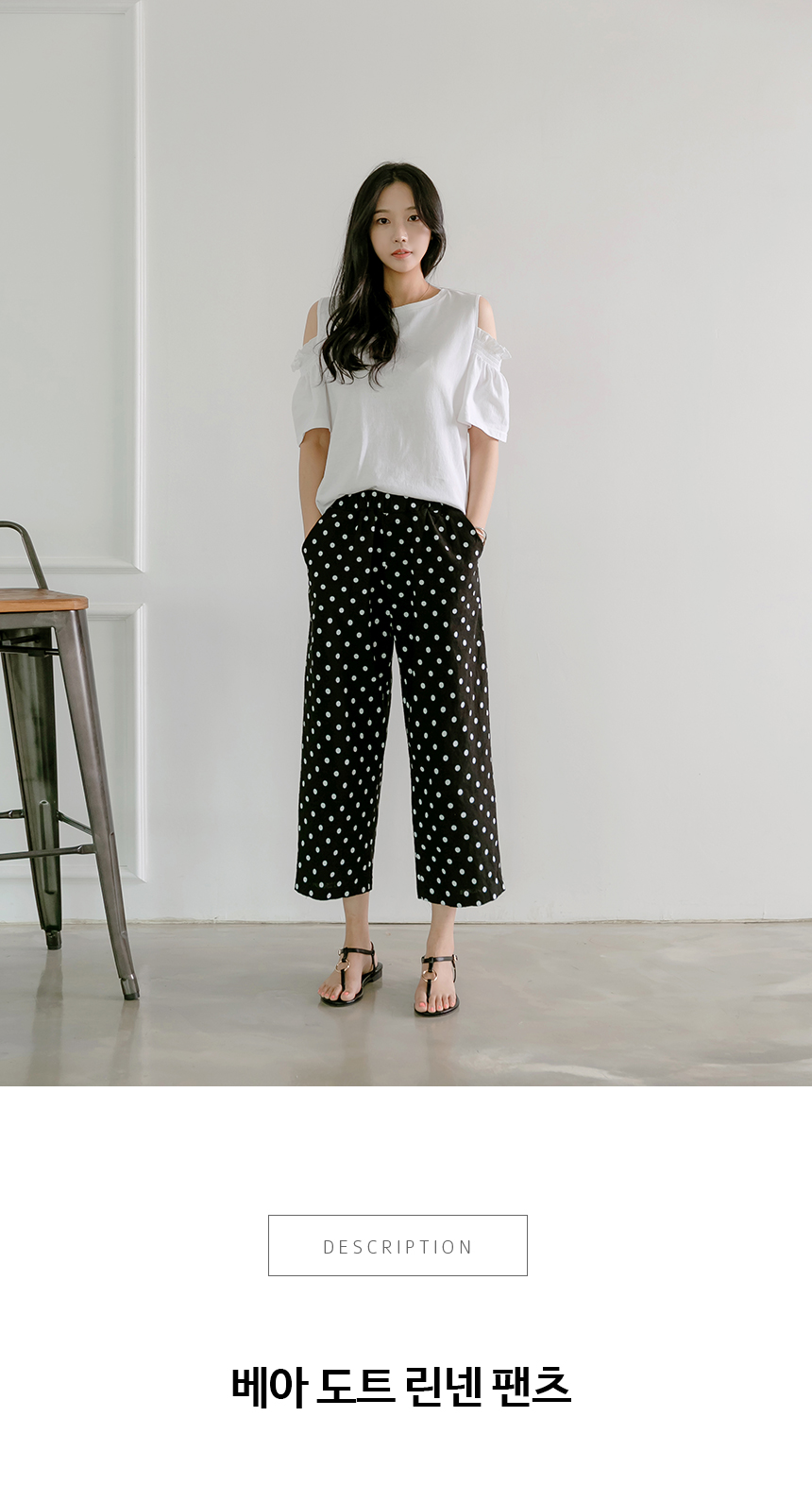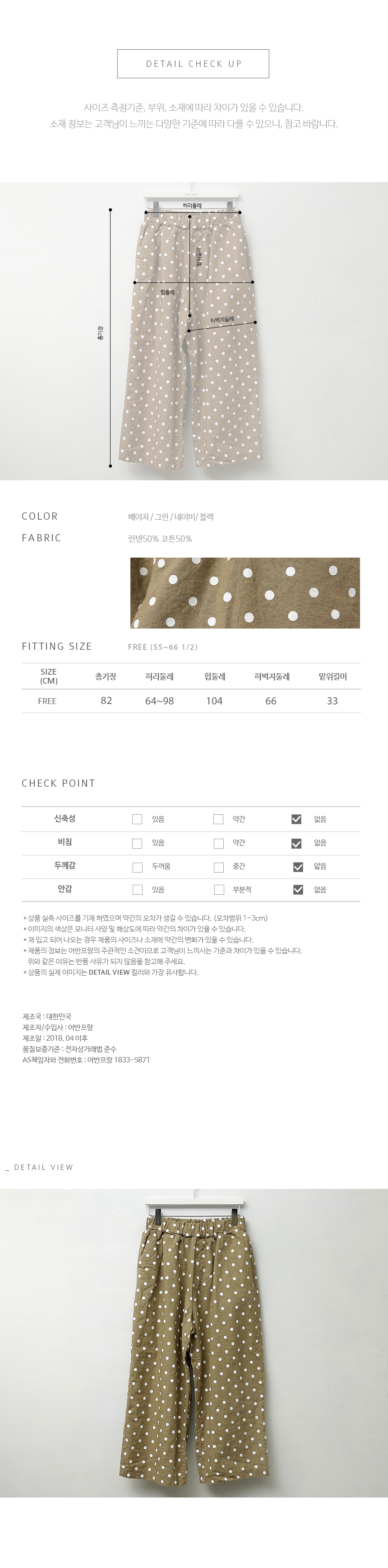 경쾌한 도트 패턴의 린넨 밴딩 팬츠