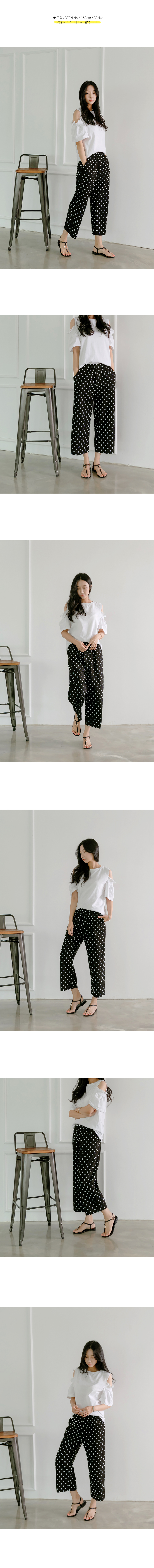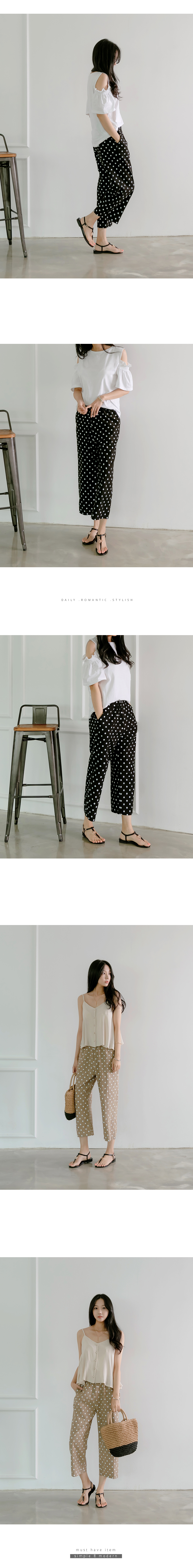 잔잔한 도트 프린트가 경쾌한 팬츠에요