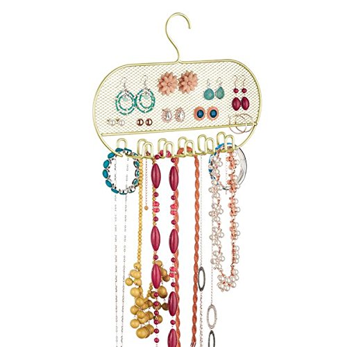 mDesign Hanging Fashion Jewelry Organizer for Rings, Earrings, Bracelets, Necklaces - 11 Hooks, Gold/Brass