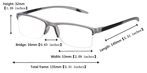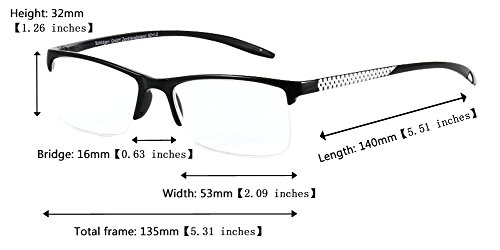 Lens Height: 32mm, Lens Width: 53mm, Bridge: 16mm, Arm Length: 140mm, Frame Total: 135mm Made of super light, durable TR90 Comes with SOOLALA clean cloth, pouch, box Classic designer stylish half frame design, suitable for most of faces Unique arm design SOOLALA is a professional designer and producer for sunglasses, especially polarized sports sunglasses, reading glasses, fashion sunglasses etc. Comfortable, lightweight body that won't hurt your nose, always clean and well protected thanks to the free cleaning cloth and case Your glasses will always be clean and well protected thanks to the free cleaning cloth and case!