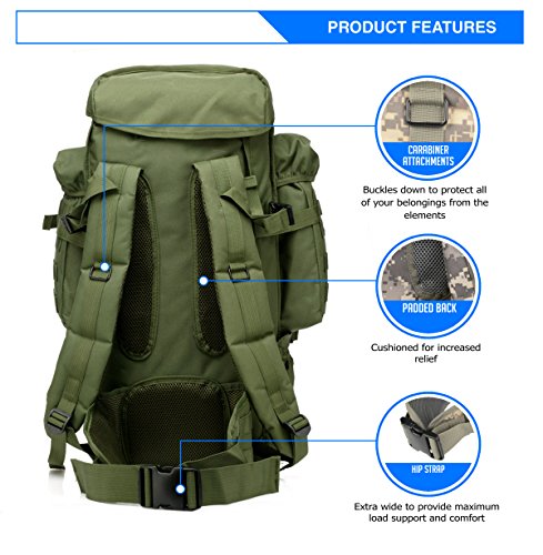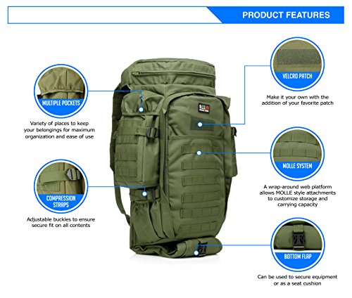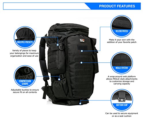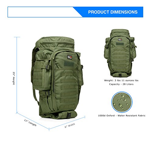 -. Feature : A Perfect Fit - Designed to be highly adjustable this tactical assault backpack will accommodate men and women of all heights and weights. / Professionally Designed for Versatility - Great for outdoor adventures such as camping, hiking, hunting, trekking and travel / Extremely Durable - Constructed with premium, heavy duty 1000d oxford fabric. Weather resistant design perfect for hard wearing and red use. Superior quality for tactical sports and operations. / MOLLE System - The backpack is equipped with a MOLLE external expansion system. Equipped with one large center compartment, two side compartments and two top pockets for maximum organization ability.The backpack is equipped with adjustable compartment straps to ensure a tight fit. / US BASED COMPANY- We are located in the US and our focus is on providing a great customer experience. Every product comes with an 18 month warranty. If you are unhappy, tell us. We will always make it right.
