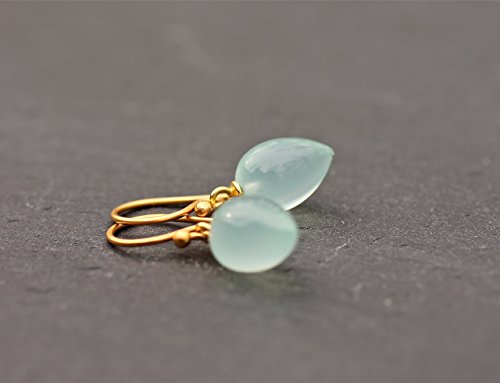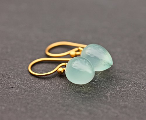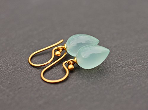 -. Title : 14k Gold Vermeil Blue Gemstone Drop Earrings by Amy Fine Design