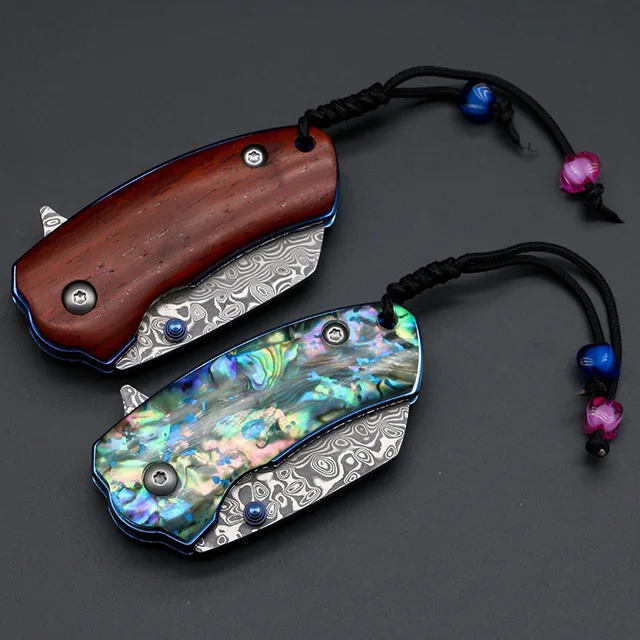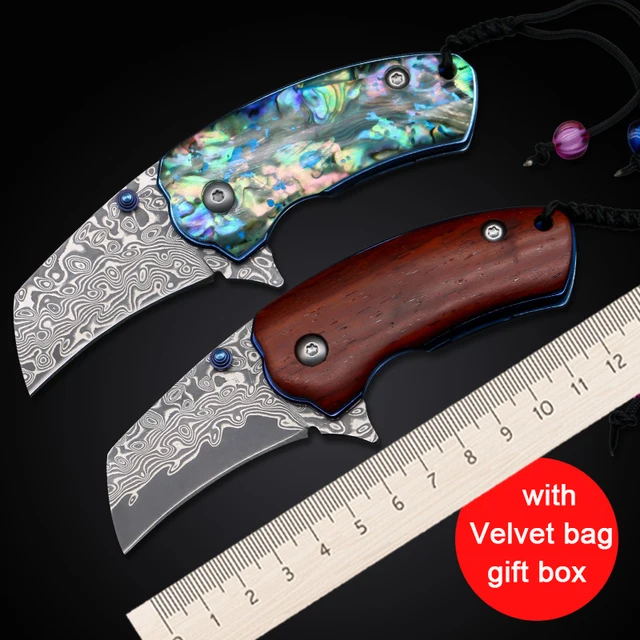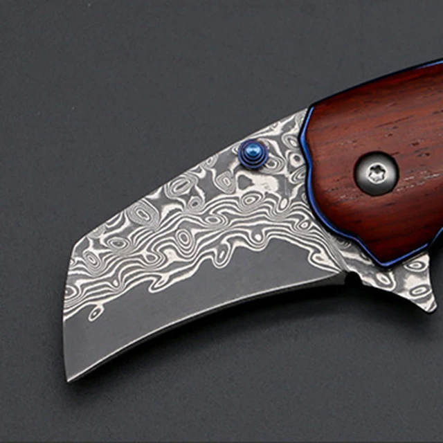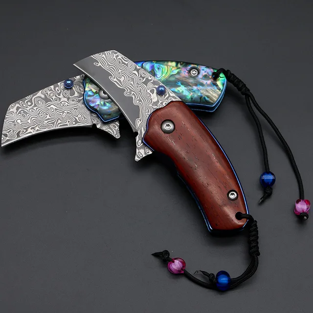 | [해외] 야외 도구 접이식 다마스커스 강철 블레이드 캠핑 나이프 미니 수행 높은 경도 전술 Friut 생존 방어 사냥 EF30 |