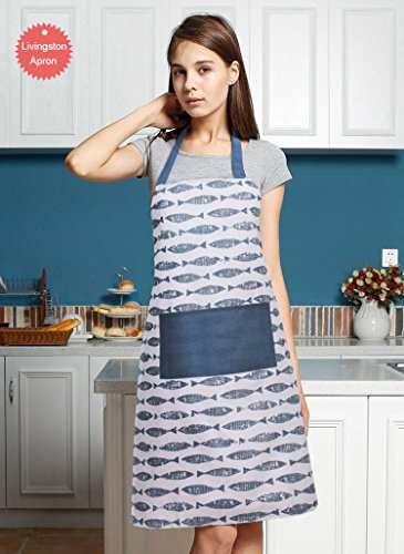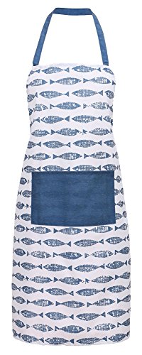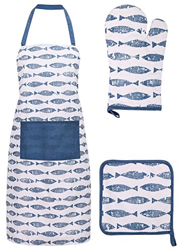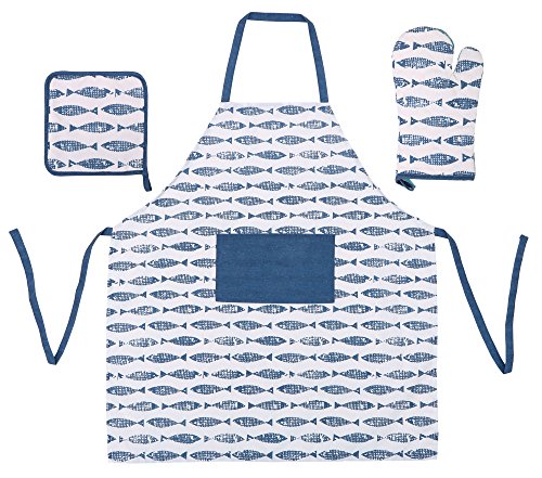 Cooking Apron Kitchen Apron, Glove, and Potholder Set,Fish Market - Navy