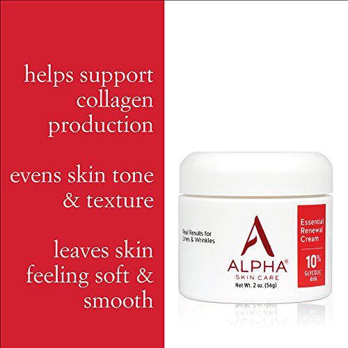 Alpha Skin Care - Essential Renewal Cream, 10% Glycolic AHA, Real Results for Lines and Wrinkles| Fragrance-Free and Paraben-Free| 2-Ounce