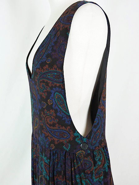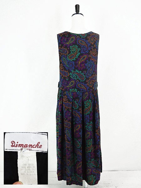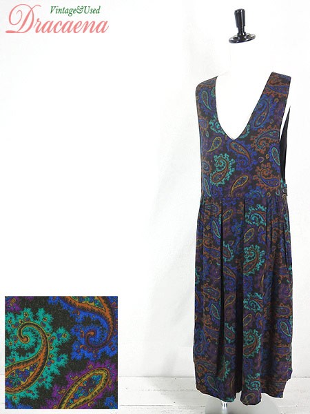 Ladies ブランド カラー黒・紫・青・緑 メール便不可 コンディション★★★ 素材レーヨン 表記サイズ記載なし スタッフコメントVネック下に生地の引き跡がございます。 実寸サイズ 着丈 119 cm 肩幅 37 cm ウエスト 33 インチ( 84 cm) ※ウエスト・ヒップ以外は平置き採寸【code】#c