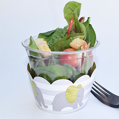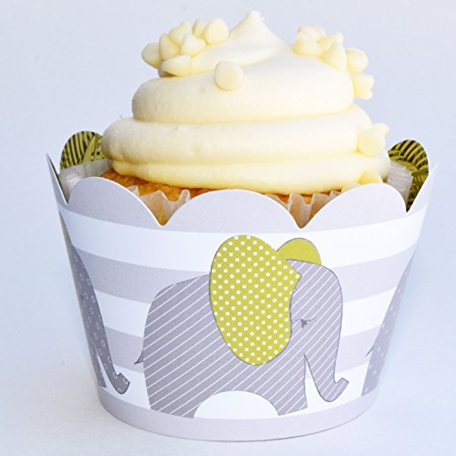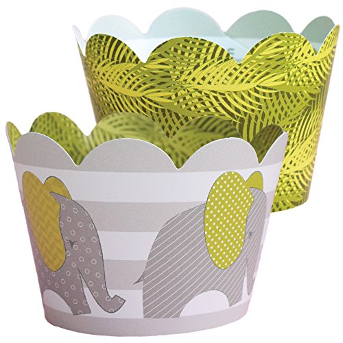 - REVERSIBLE darling gray elephants accented with green reverses to a tropical green leaf pattern on each cupcake wrapper. Perfect decorations for a gender reveal baby shower, jungle theme for a toddle boy 1st birthday party, or a safari theme gender neutral baby shower for a boy or girl.